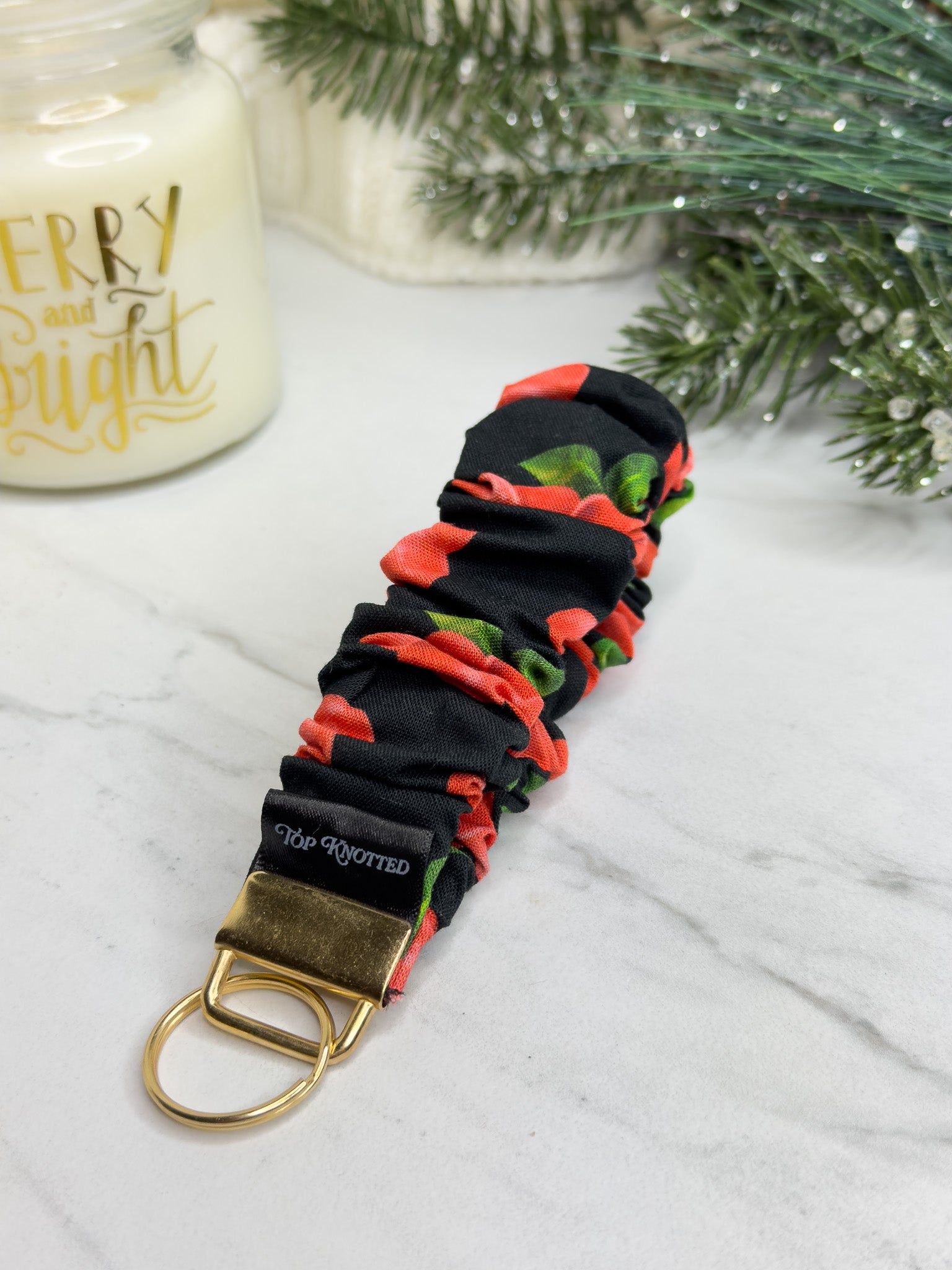 Unlike standard fabric wristlets, this scrunchie design offers superior stretch and softness, making it more comfortable to wear all day without digging in or losing shape. Accented with polished gold hardware, this wristlet transforms your everyday keys into a cute accessory. Perfect for those who love a touch of luxury in their everyday essentials.