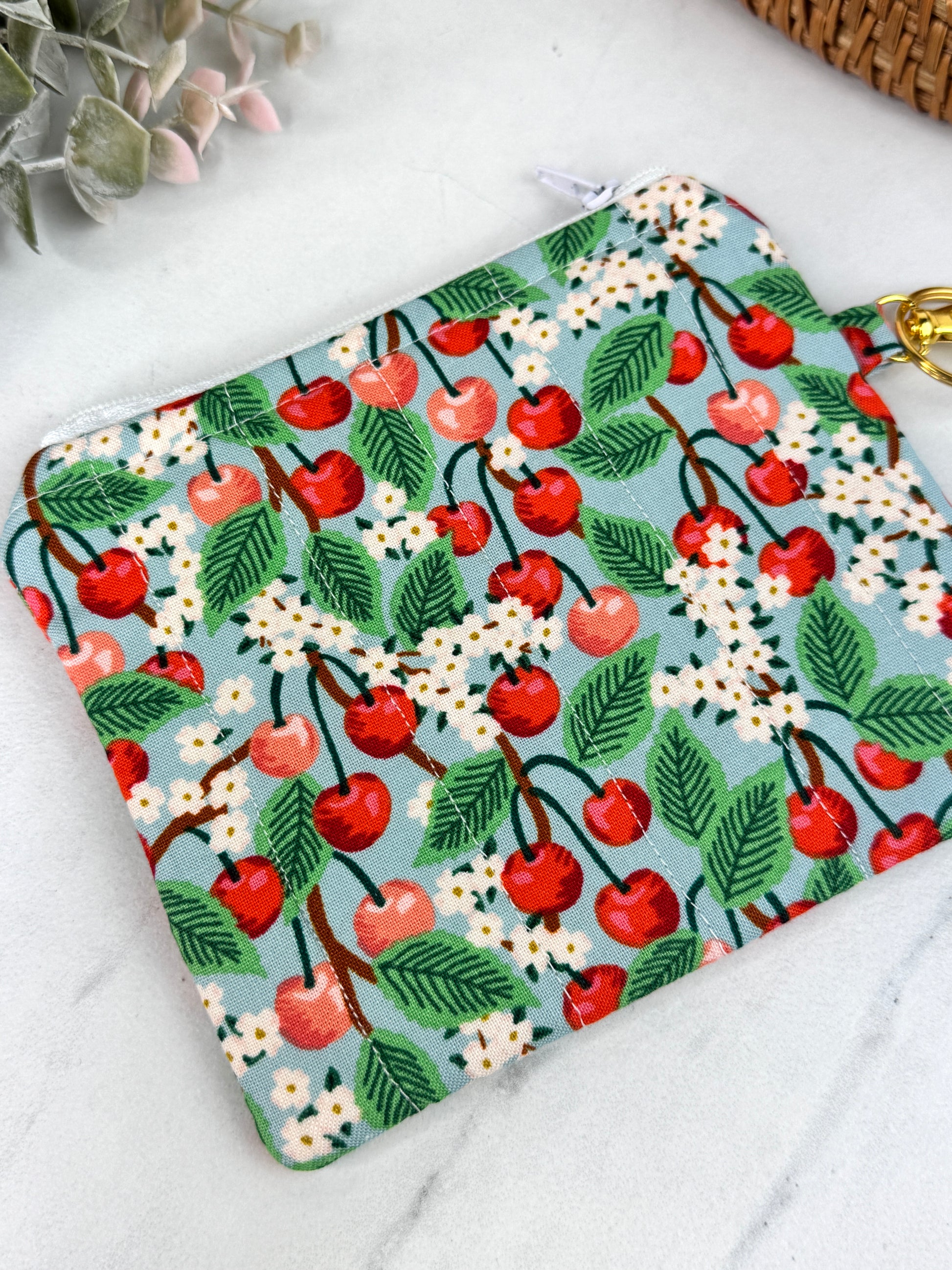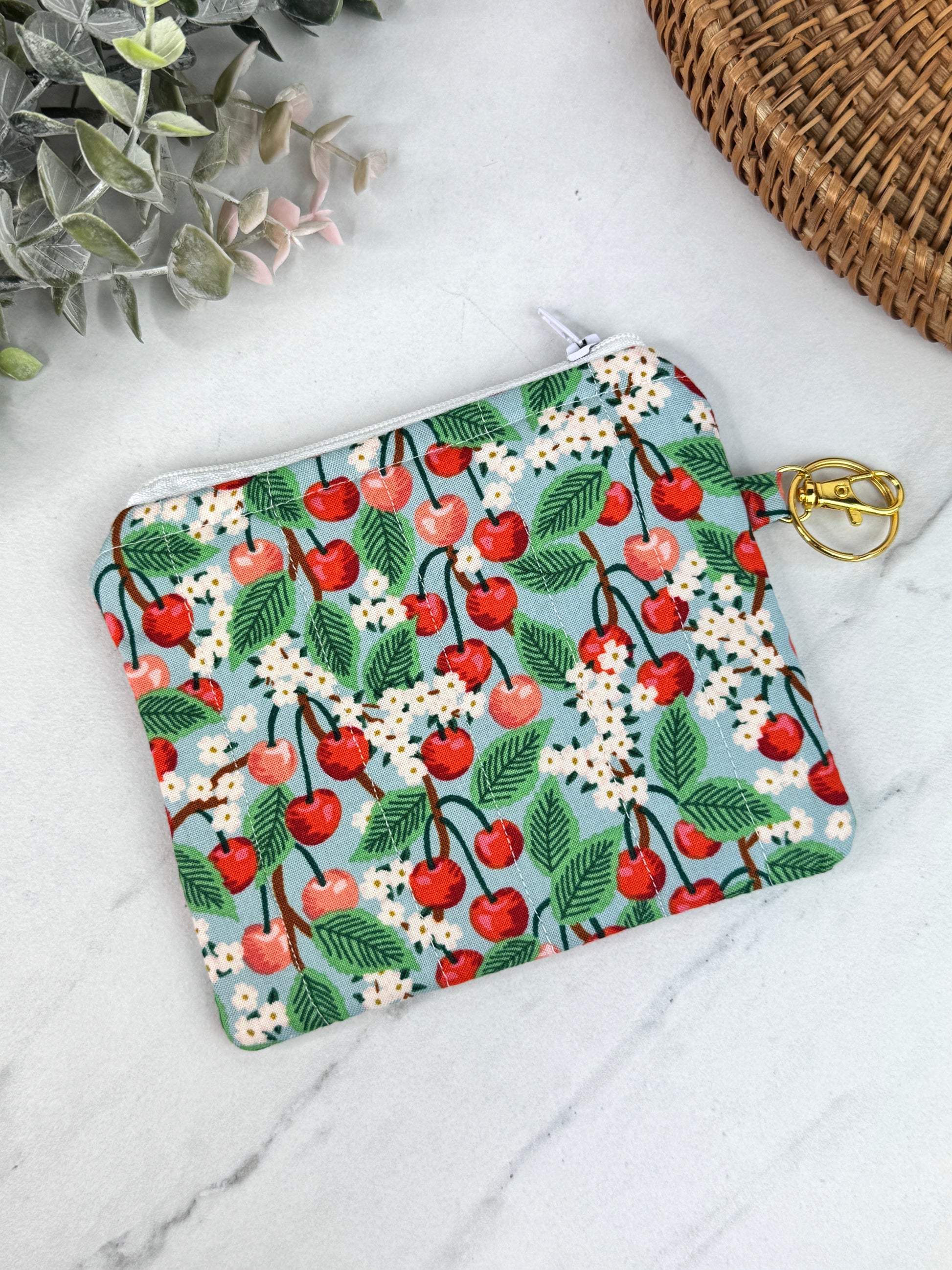 Keep your essentials close and organized with this quilted keychain pouch. This cutie is a charming and practical addition to your keys. Measuring 5.5" x 4.25", it’s perfectly sized to hold your license, cards, sanitizer, lip balm, cash, headphones, and more, all secured with a smooth zipper closure.