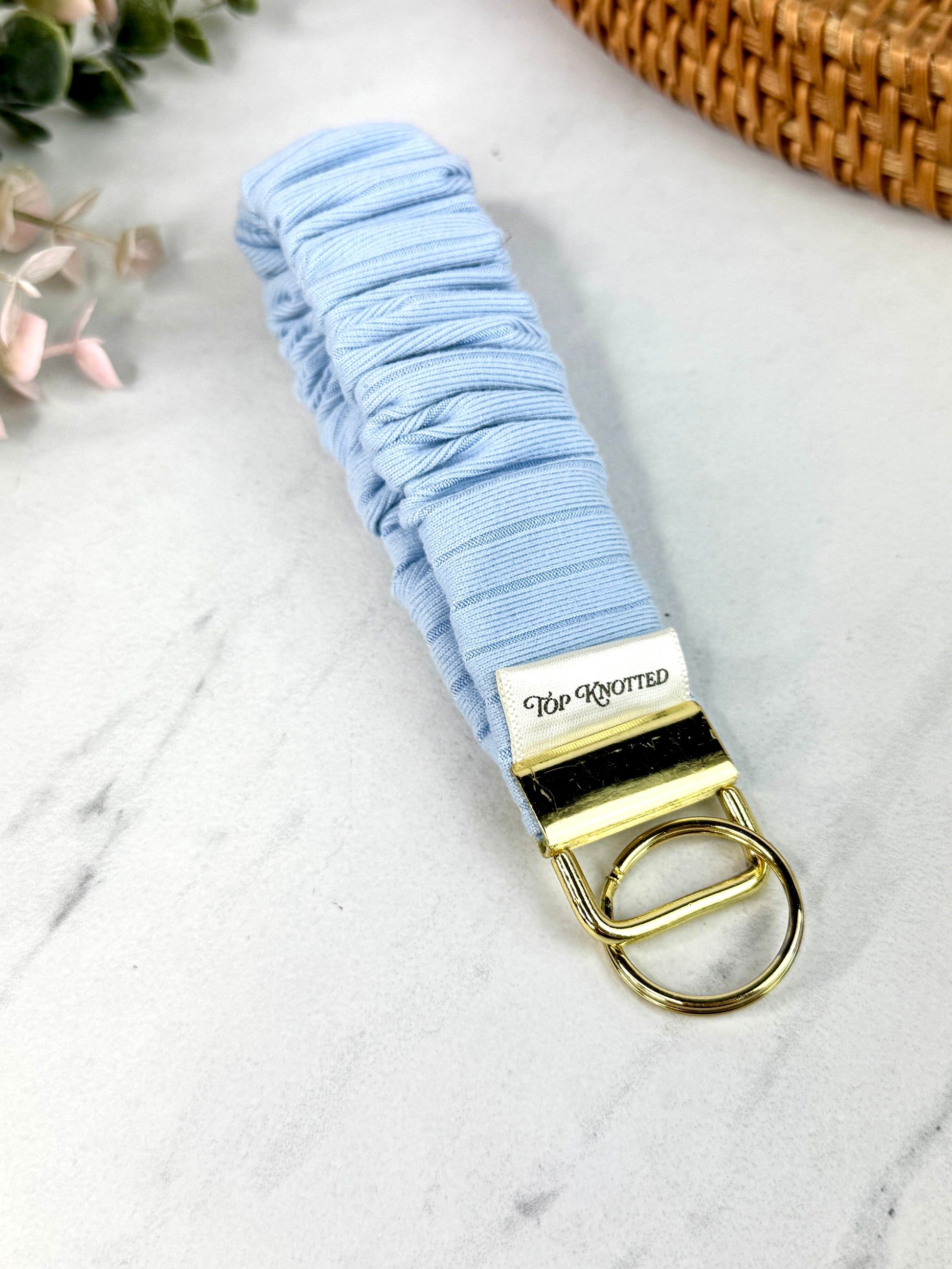 Unlike standard fabric wristlets, this scrunchie design offers superior stretch and softness, making it more comfortable to wear all day without digging in or losing shape. Accented with polished gold hardware, this wristlet transforms your everyday keys into a cute accessory. Perfect for those who love a touch of luxury in their everyday essentials.