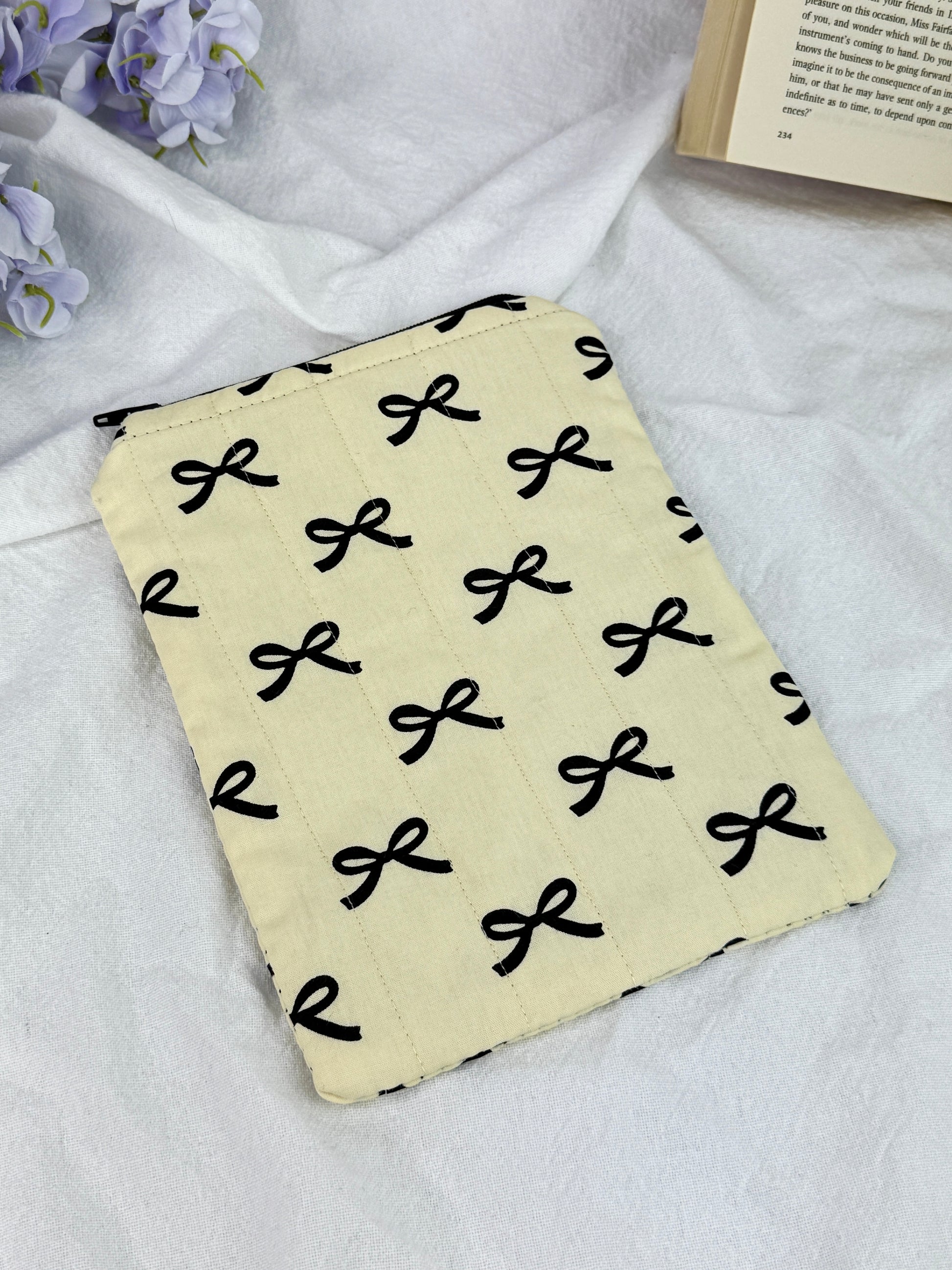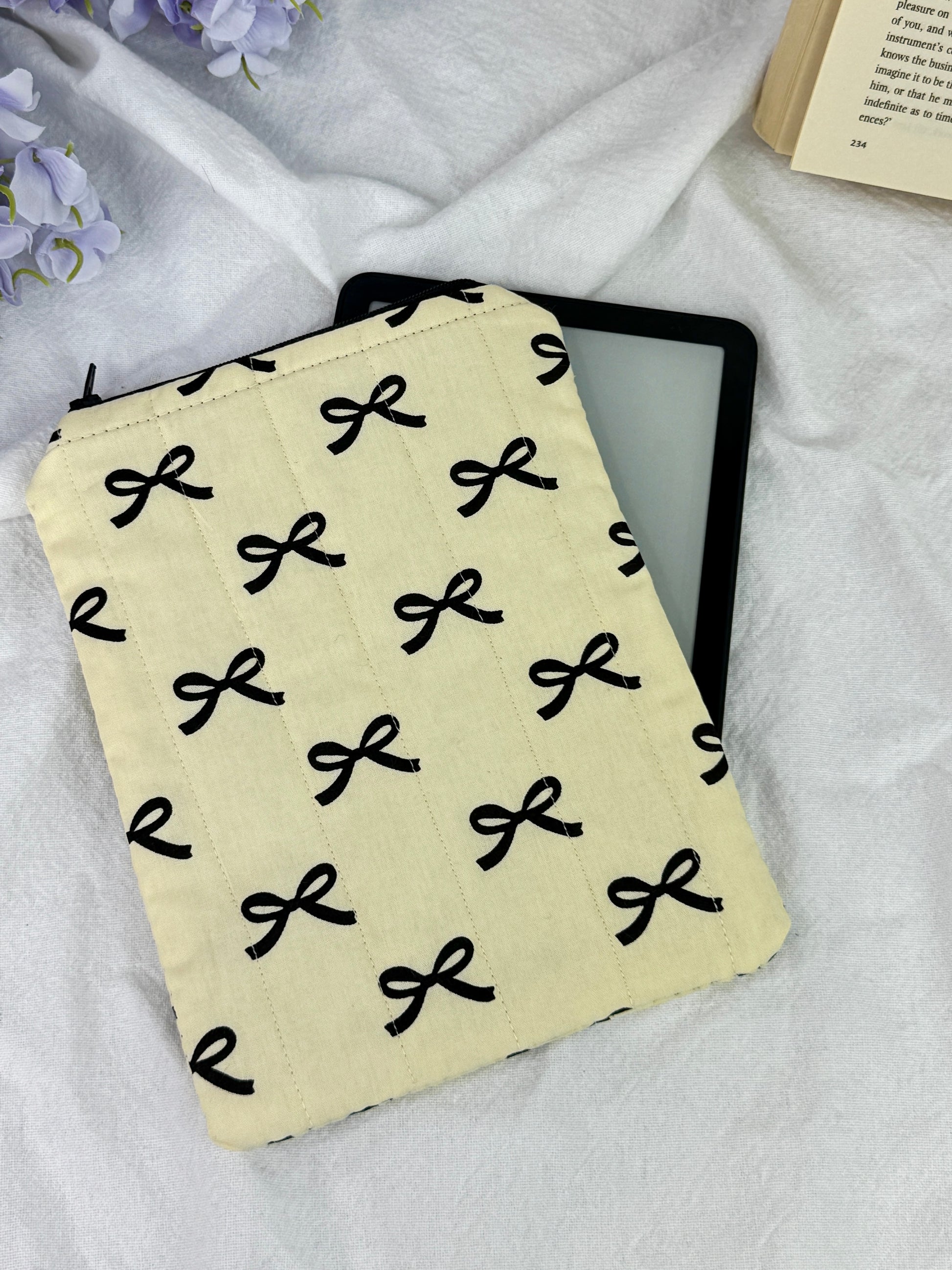 Wrap your Kindle, Kobo or e-reader in softness and security with this quilted sleeve. Crafted with gentle padding and finished with a smooth zipper closure, it offers cozy protection against bumps and scratches while adding a handmade, comforting touch to your reading routine.
