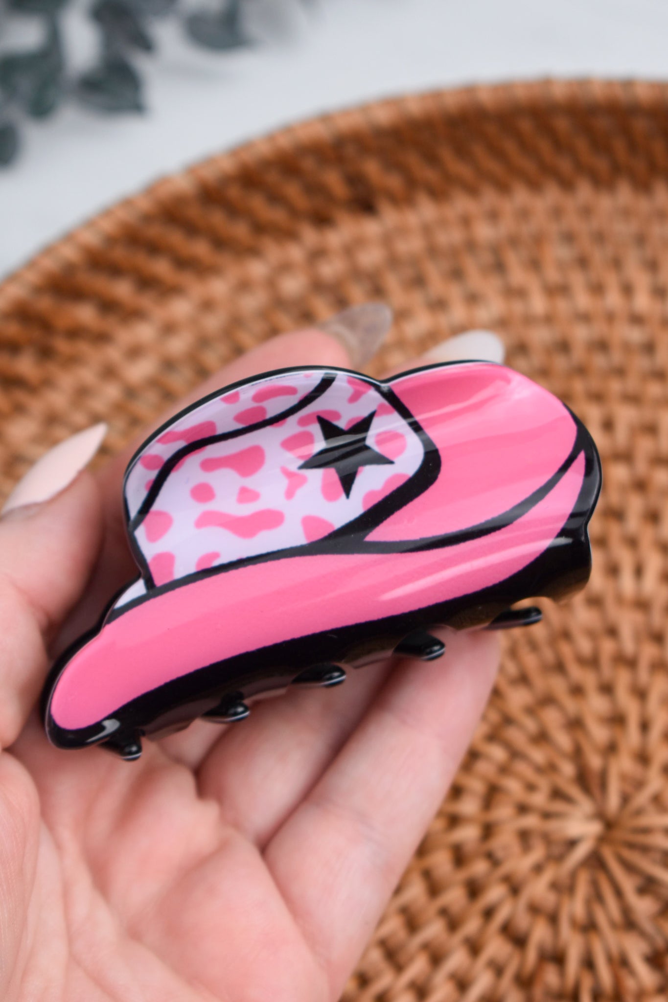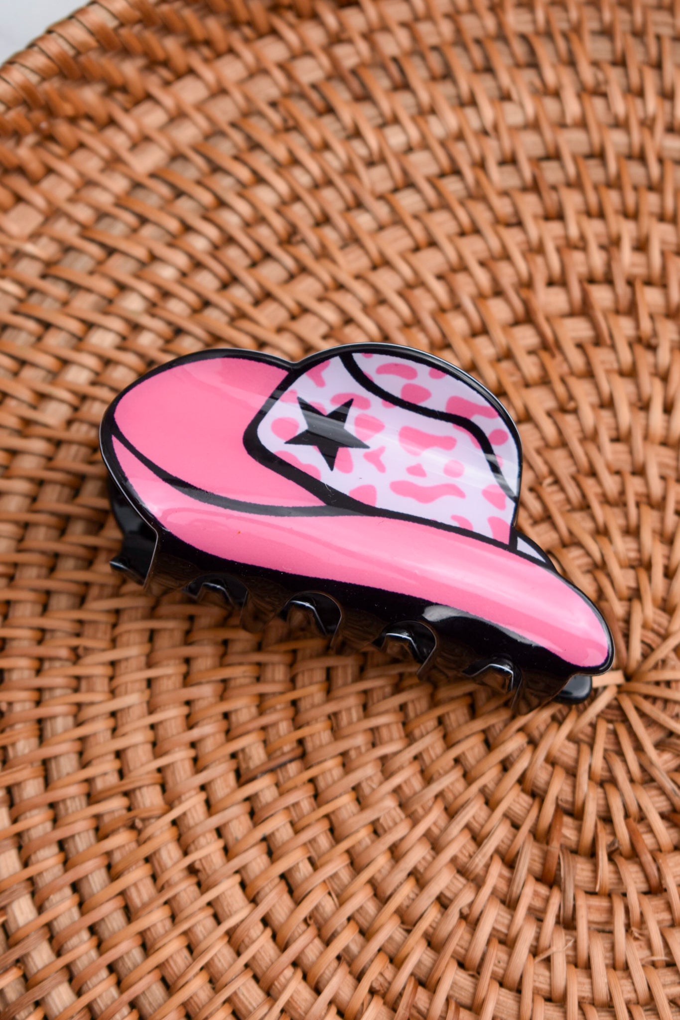 Wrangle your hair in true western style. The Cowgirl Claw Clip brings all the yeehaw energy with its cowboy hat shape and sturdy grip—perfect for rodeo days, country concerts, or adding a little southern flair to your everyday look. Fun, functional, and full of personality.