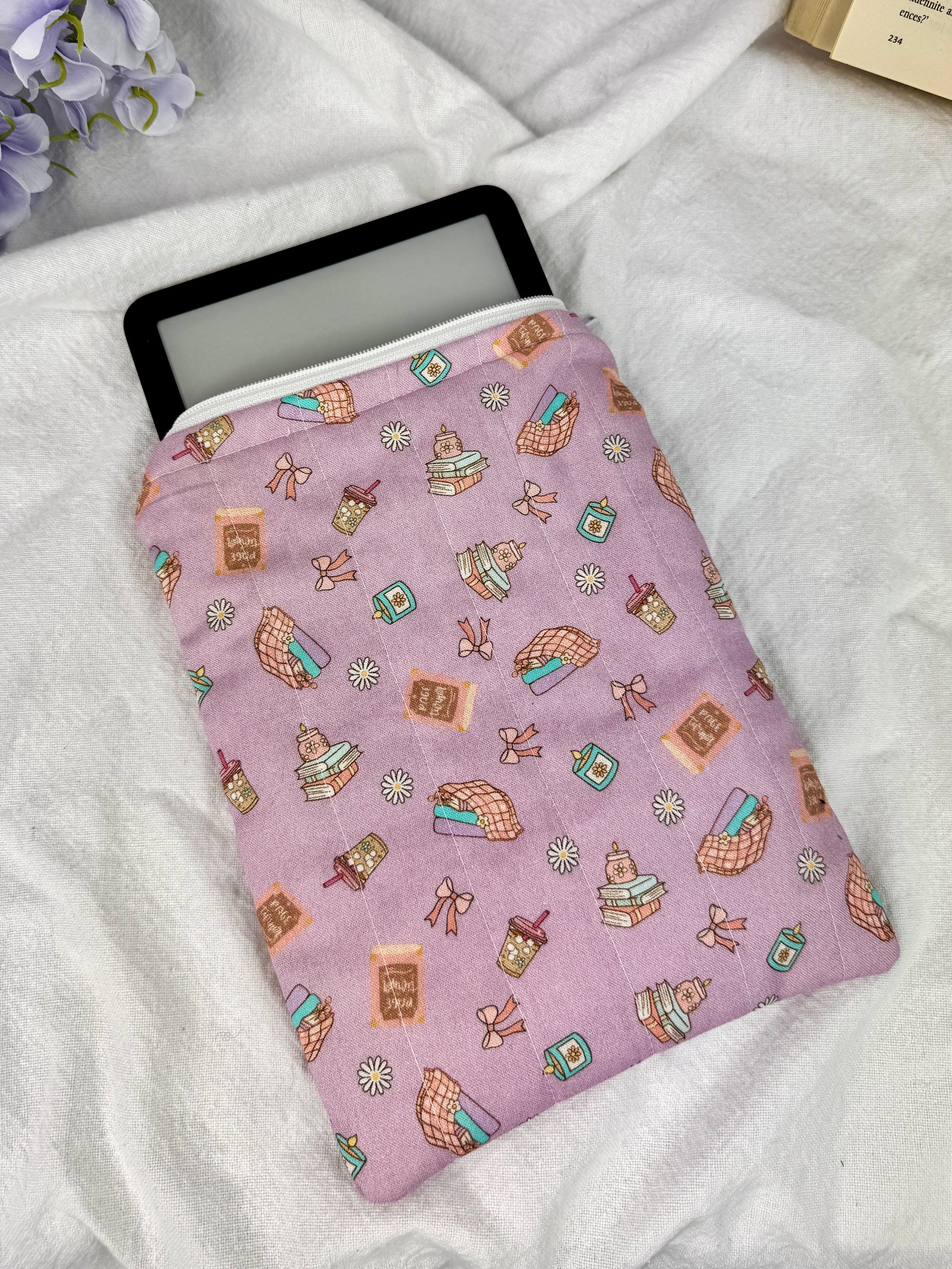 Wrap your Kindle, Kobo or e-reader in softness and security with this quilted sleeve. Crafted with gentle padding and finished with a smooth zipper closure, it offers cozy protection against bumps and scratches while adding a handmade, comforting touch to your reading routine.