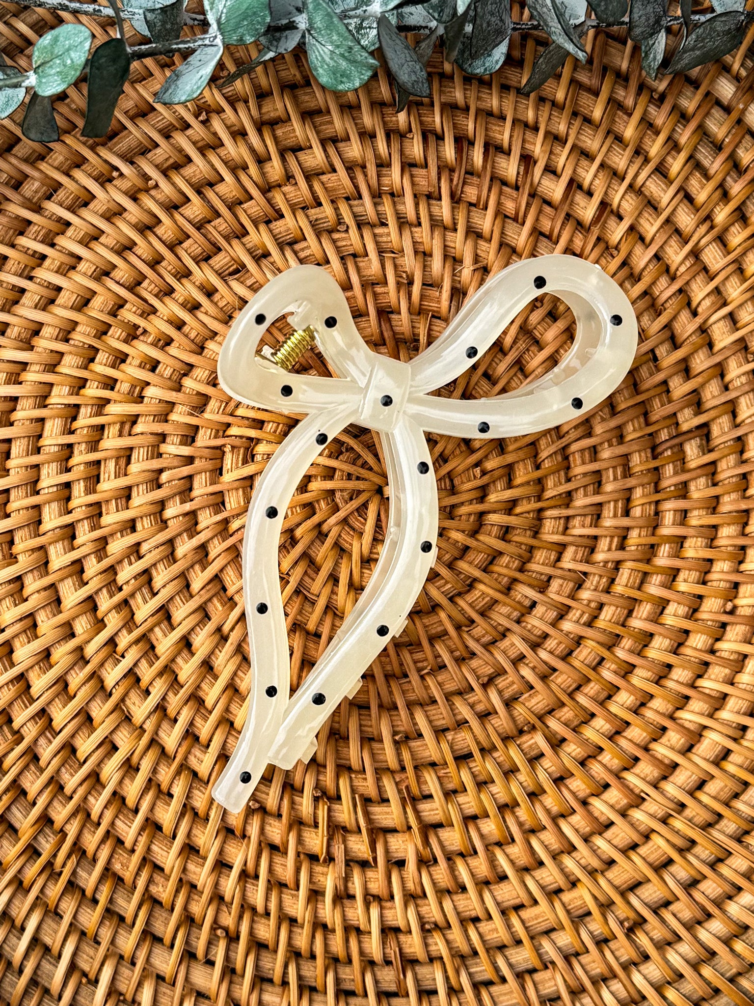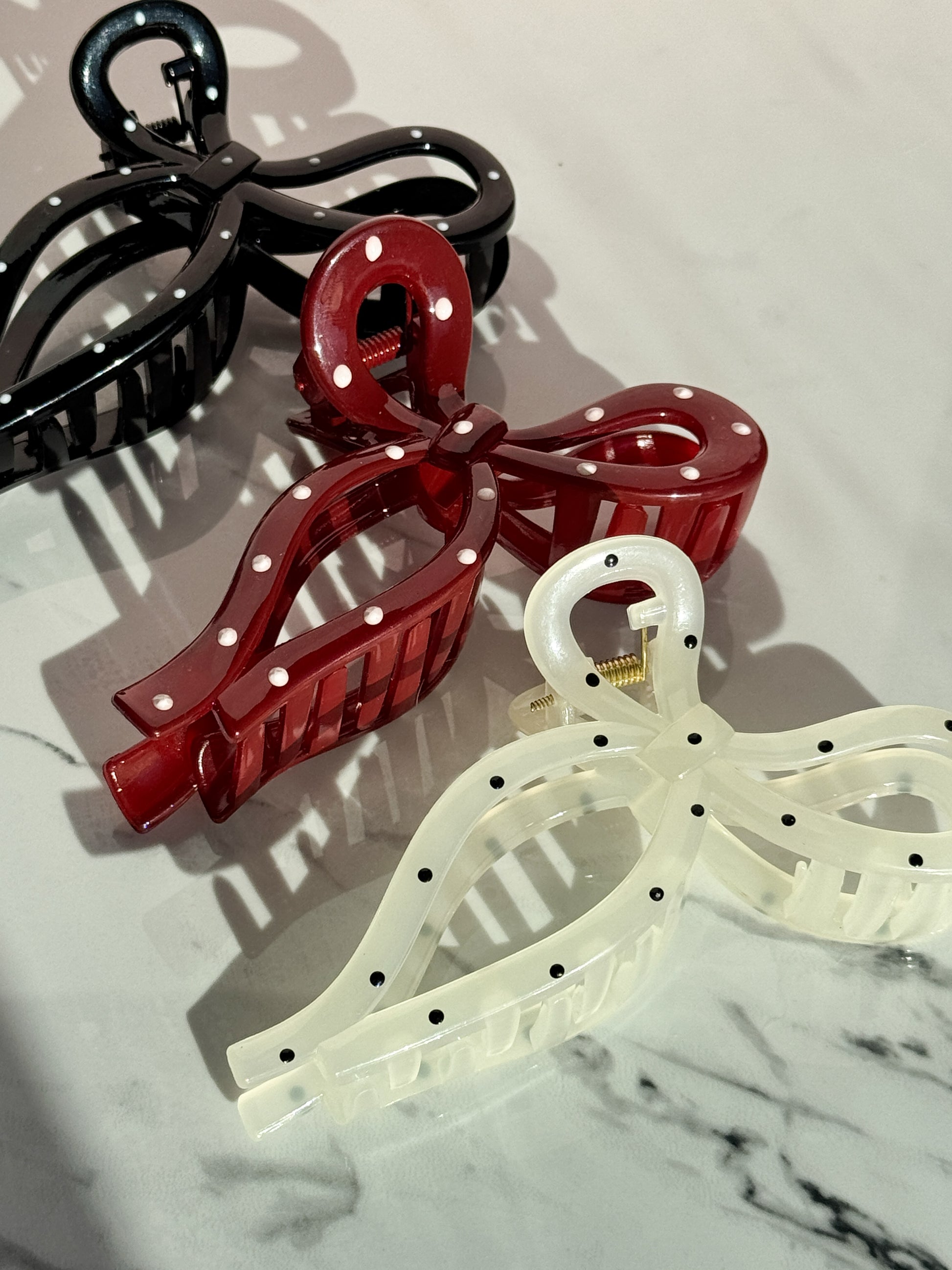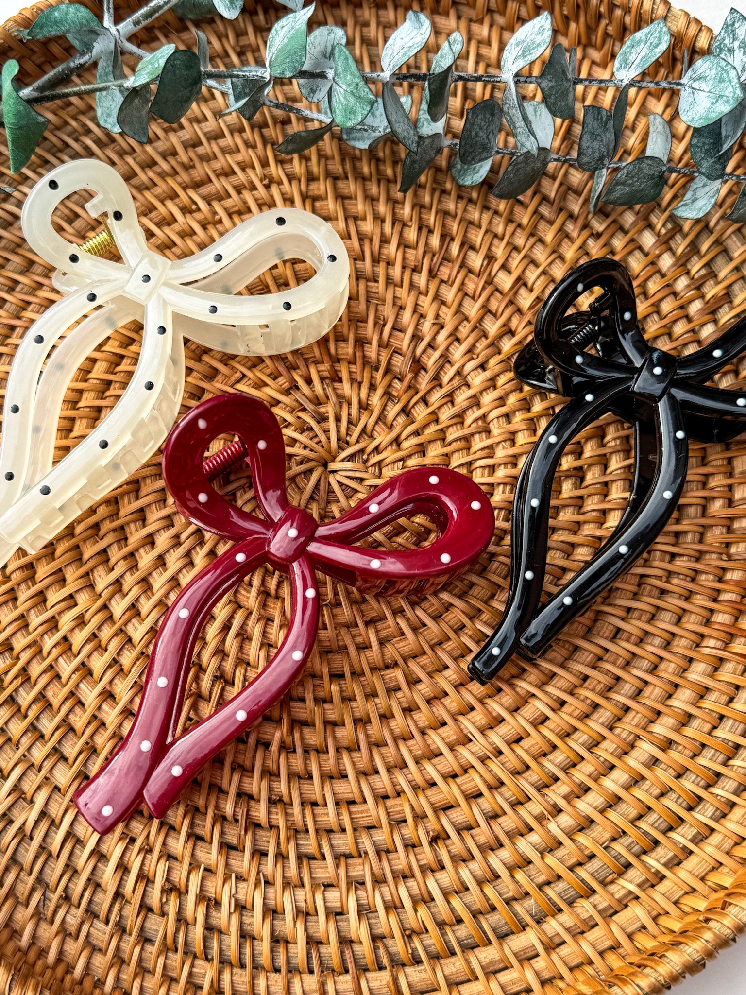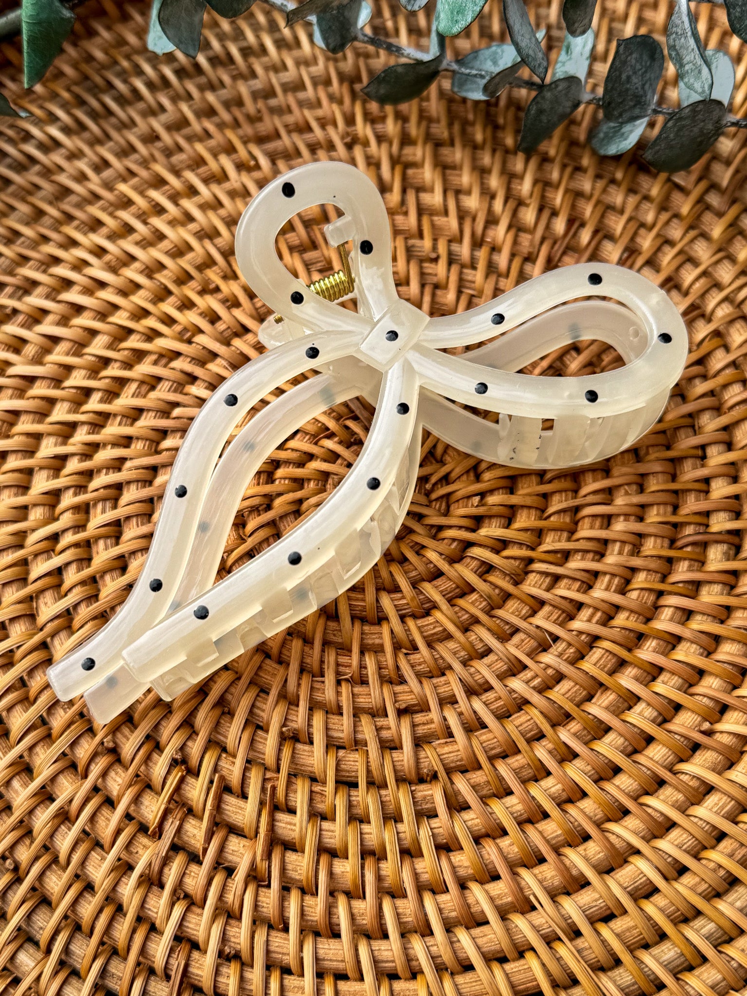 Sweet with a touch of retro flair—the Darling Bow is made for soft styles and playful moments. Featuring a classic bow shape with a cheerful polka dot pattern, this clip adds personality to your look while keeping your hair comfortably in place. Whether you're dressing up a casual outfit or topping off a romantic updo, this piece is equal parts fun and functional.