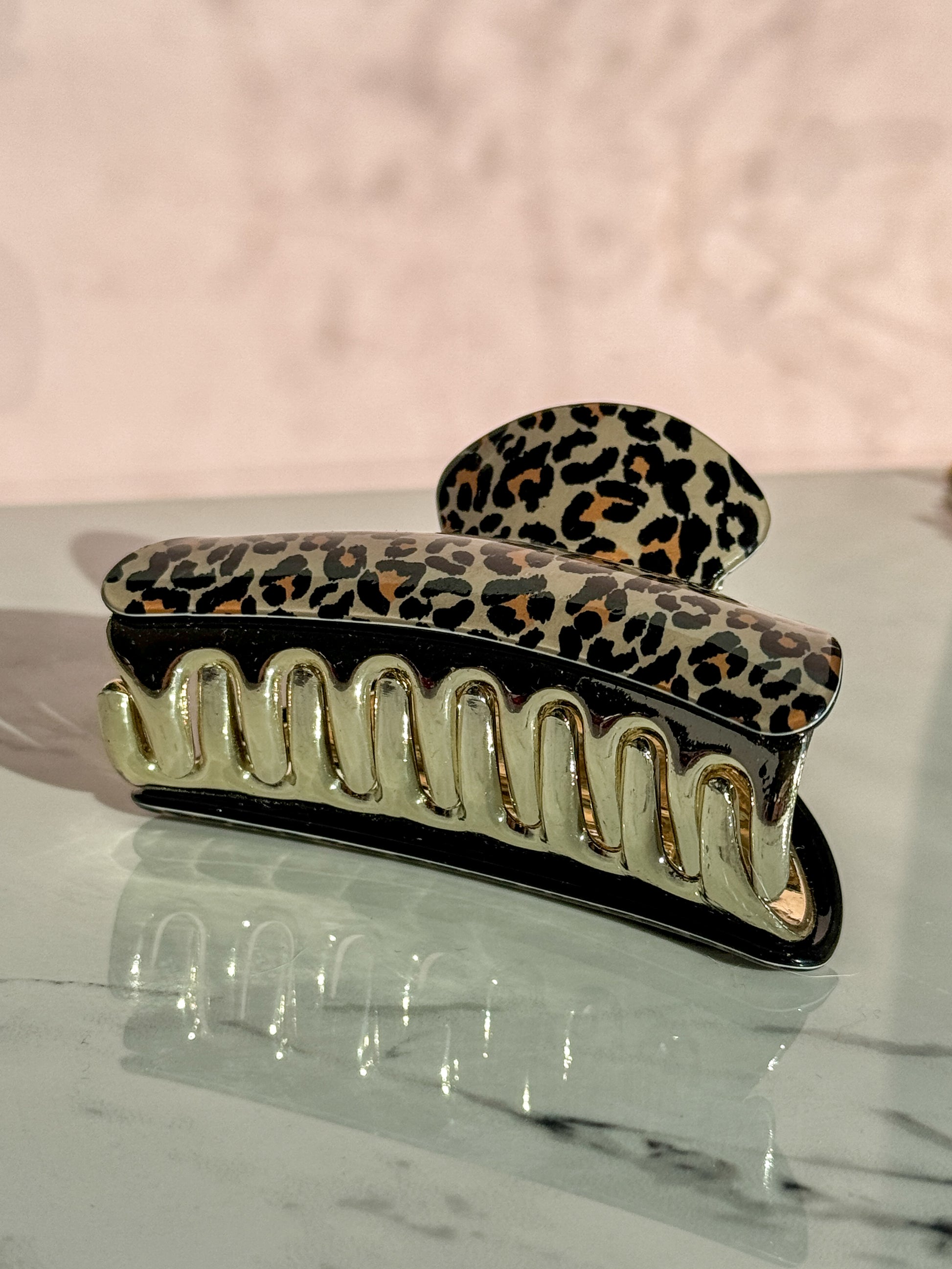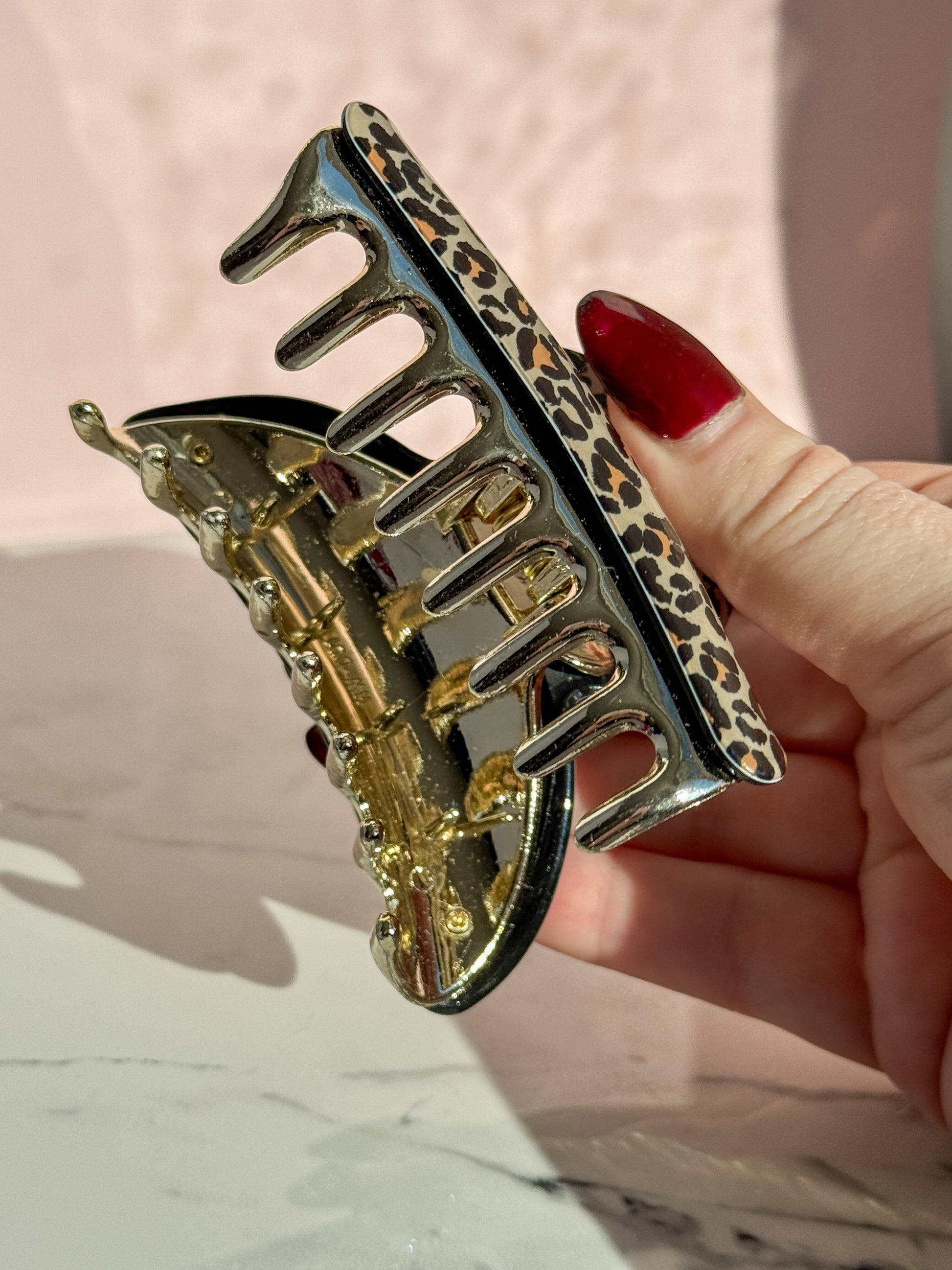 Fierce meets refined. The Golden Leopard Claw features a sleek gold metal base paired with chic leopard print detail—bringing just the right mix of bold and elevated to your everyday look. It’s the perfect clip to dress up a casual bun or add edge to a polished style.