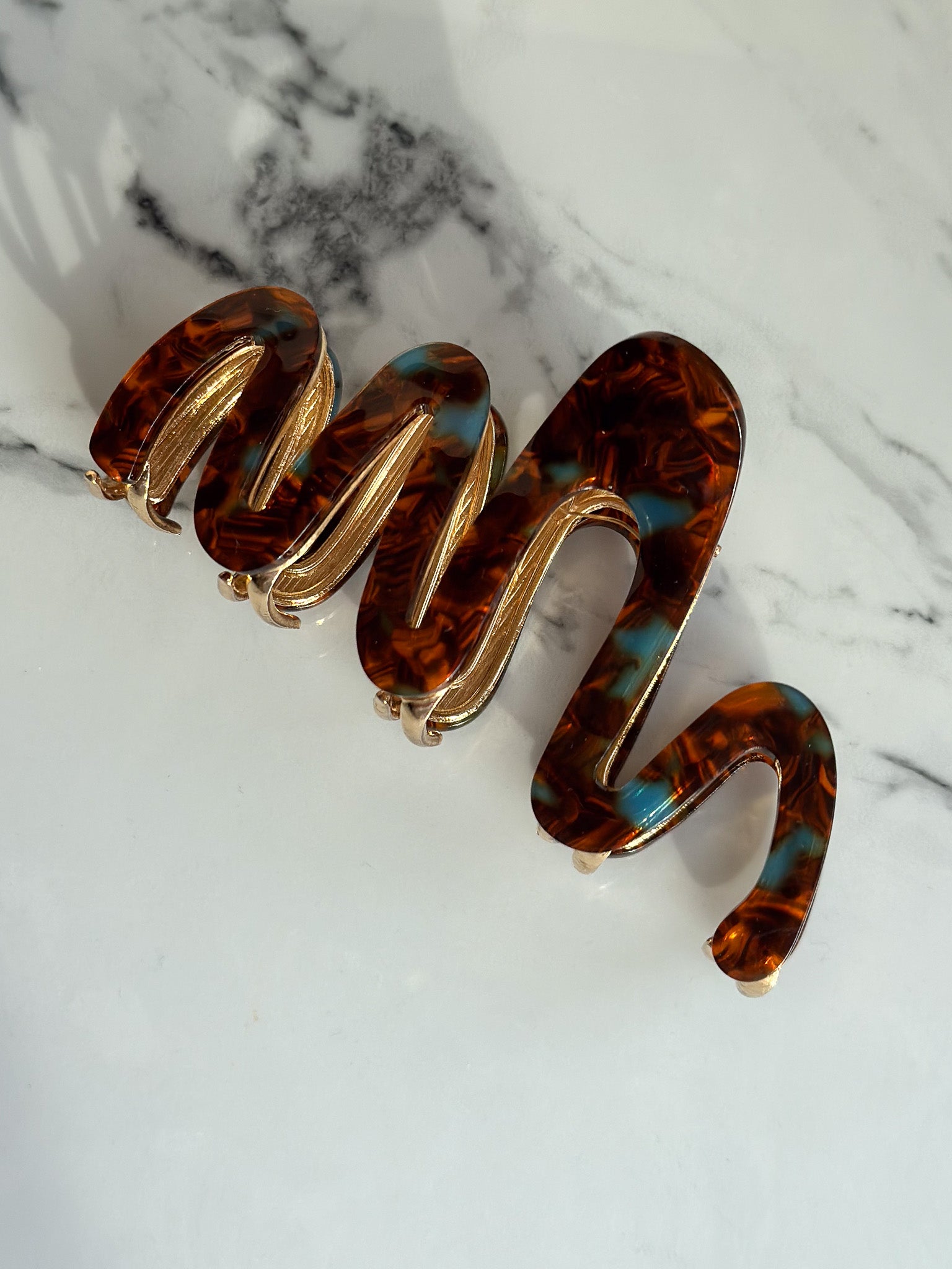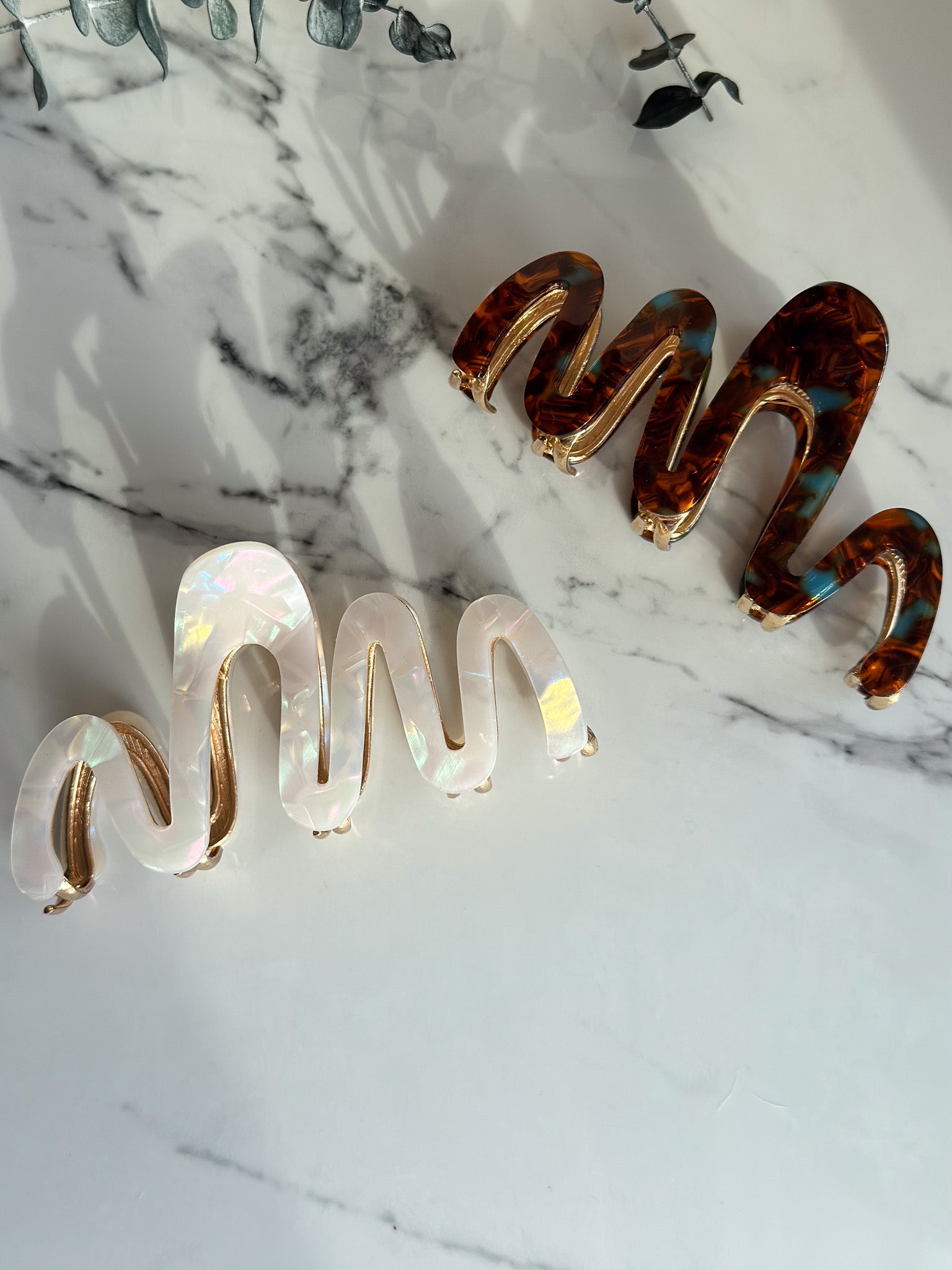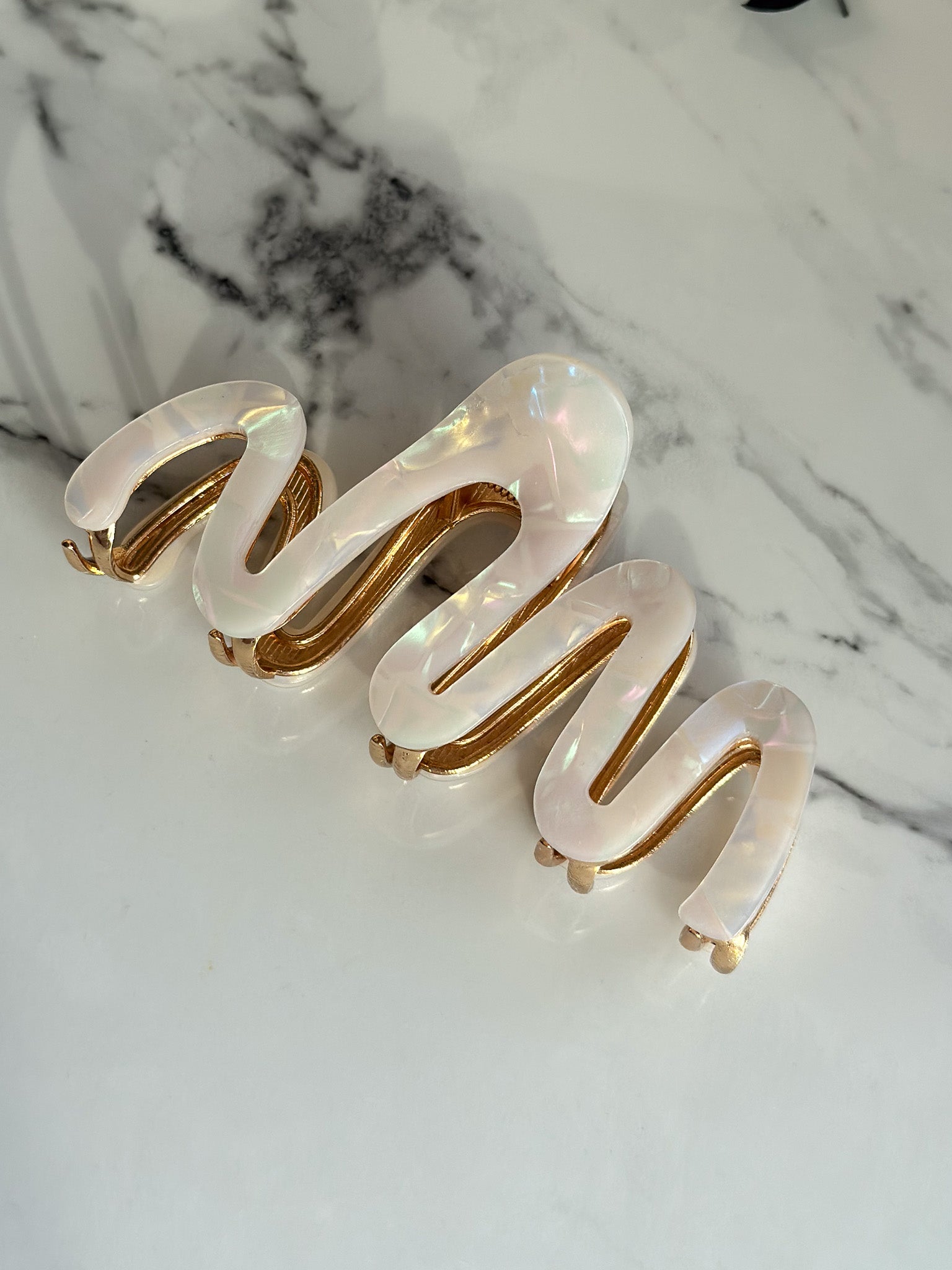Sleek, sculptural, and effortlessly polished—this gold wave claw clip makes a subtle statement while keeping your hair perfectly in place. Crafted from lightweight metal with a fluid, modern shape, it’s perfect for full updos, low twists, or a quick half-up look when you want to add a little shine to your day.