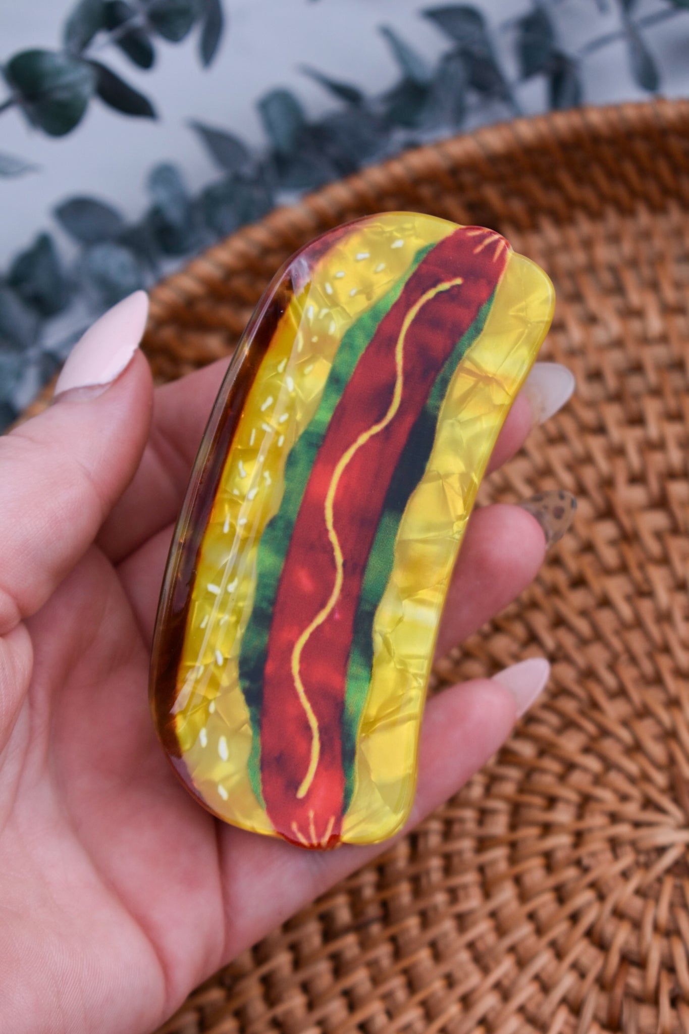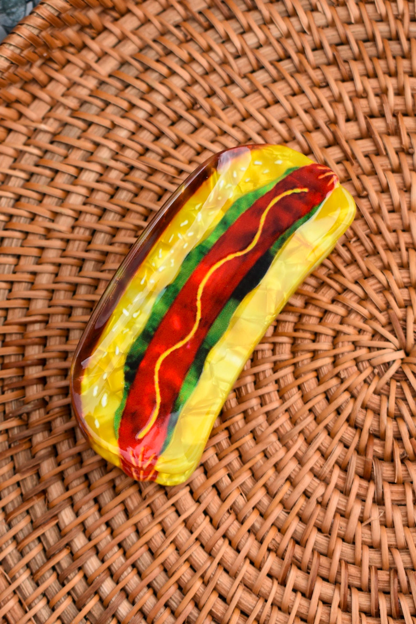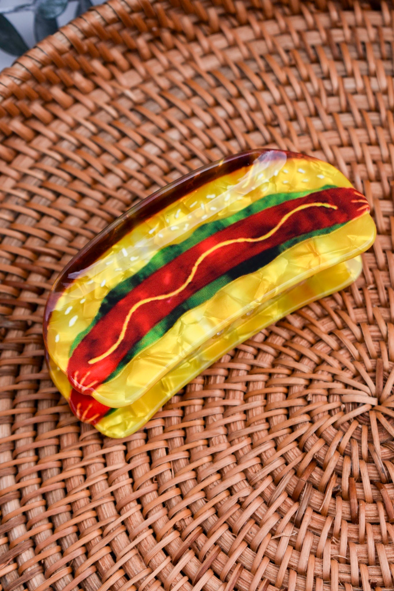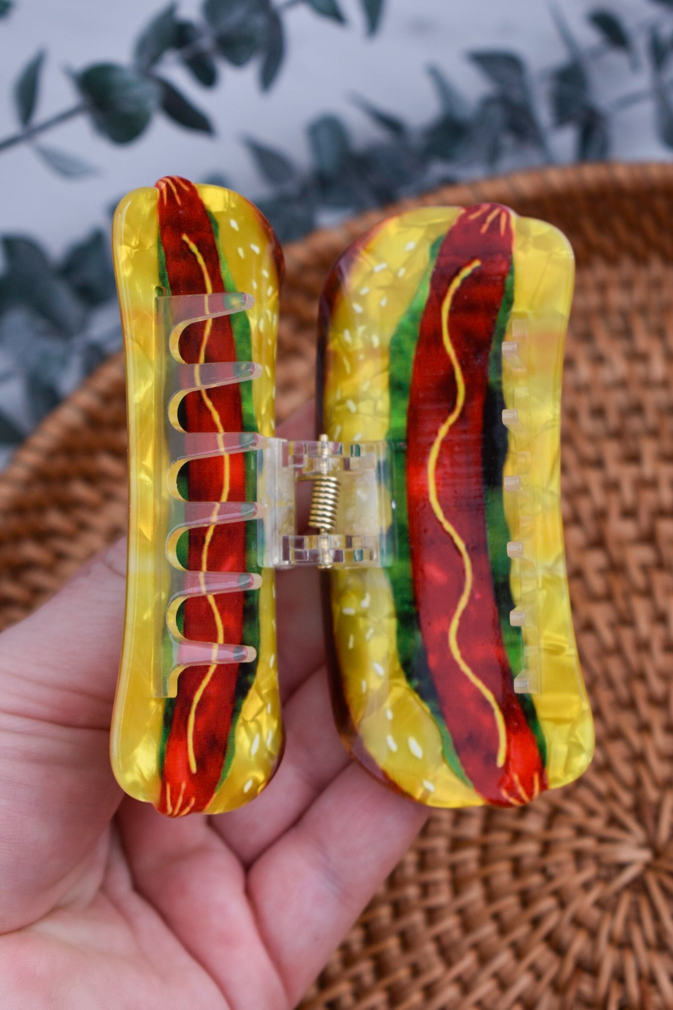 Serve up some serious style with this hotdog-inspired claw clip! Whether you're heading to a BBQ or just want to add a dash of humour to your hair day, this playful piece is here for the buns—and the hold.