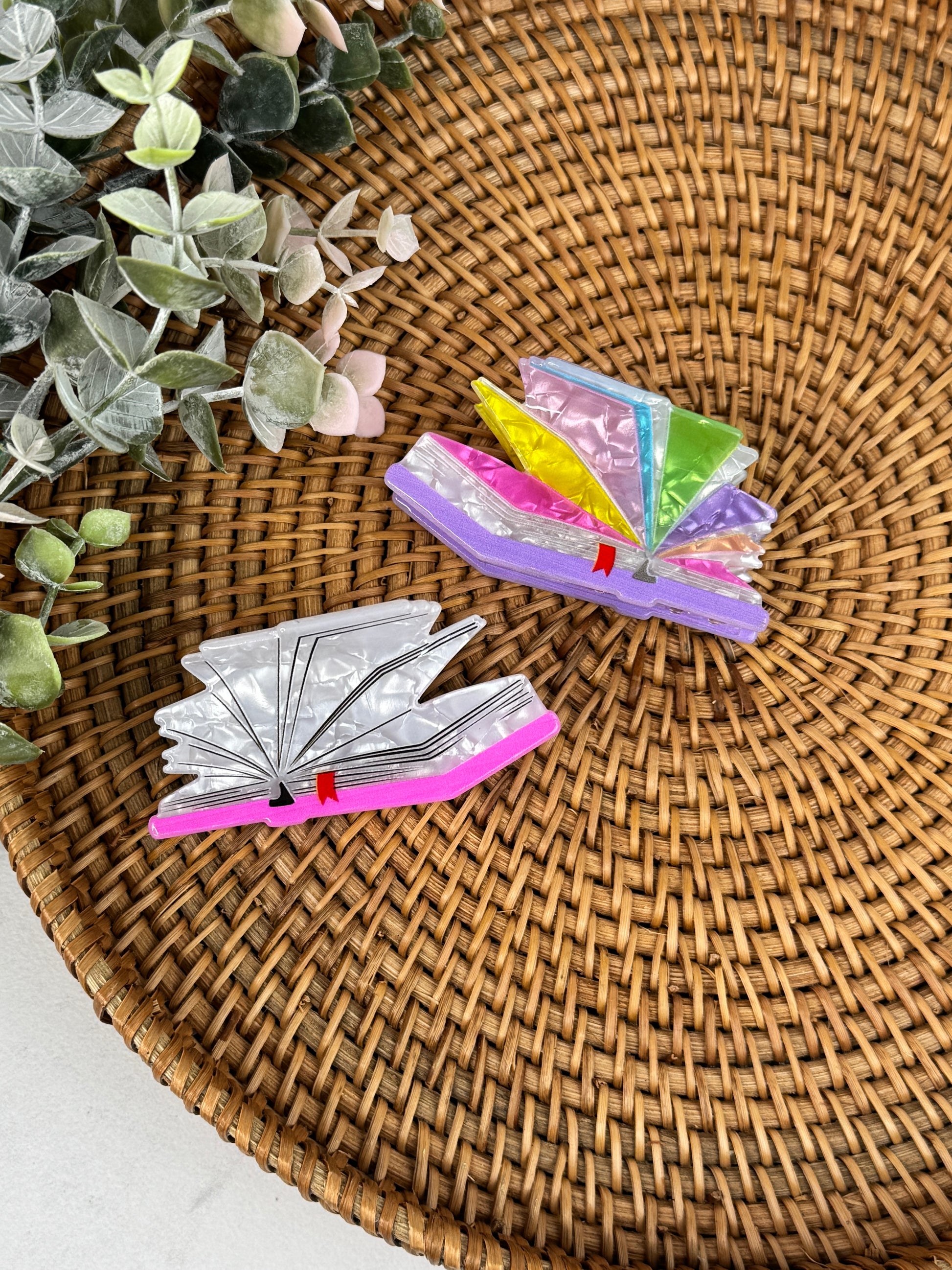 For the readers, dreamers, and storytellers — the Open Book Claw Clip is a literary-inspired accessory made to turn heads. Designed to resemble a book mid-flutter, with pages spread open in motion, this clip brings a touch of imagination to your everyday style. Whether you're on chapter one or the final page, it's the perfect way to wear your love for books loud and proud.