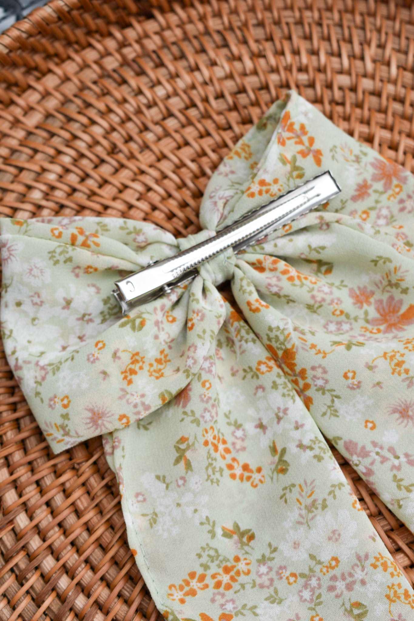 A charming, handcrafted bow designed with a secure clip on the back—an effortless way to elevate any hairstyle with a playful, feminine touch.