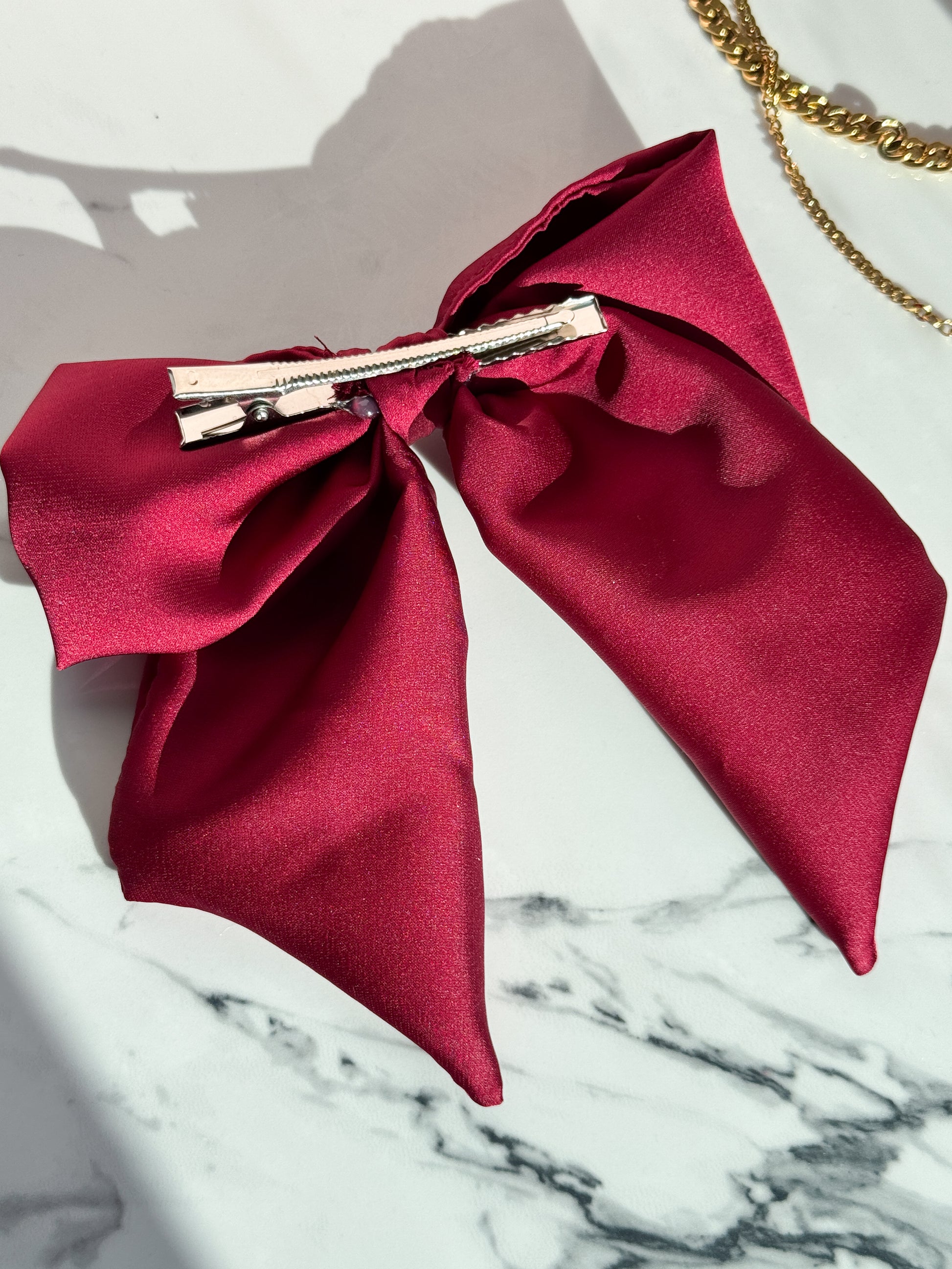 A charming, handcrafted bow designed with a secure clip on the back—an effortless way to elevate any hairstyle with a playful, feminine touch.