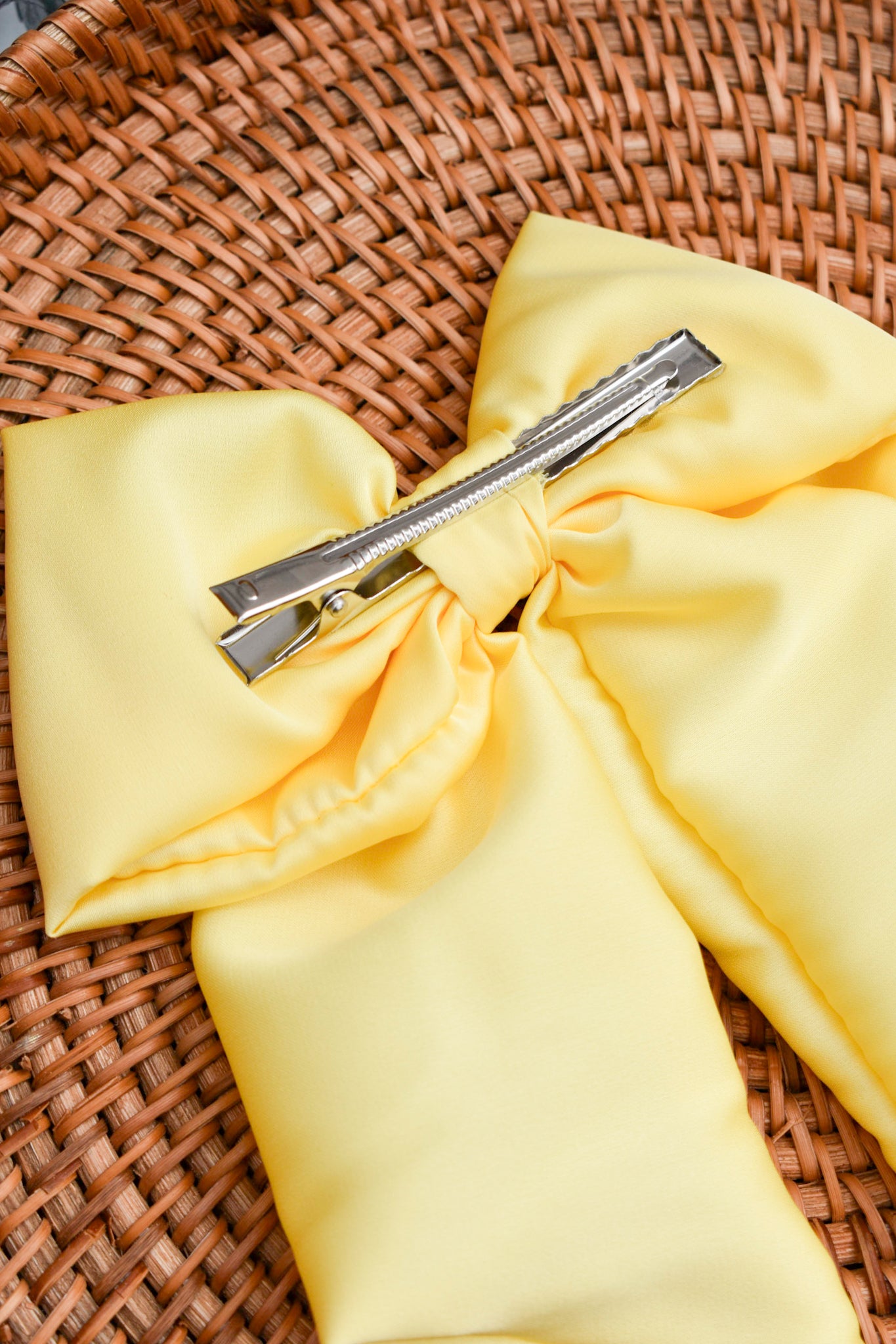A charming, handcrafted bow designed with a secure clip on the back—an effortless way to elevate any hairstyle with a playful, feminine touch.