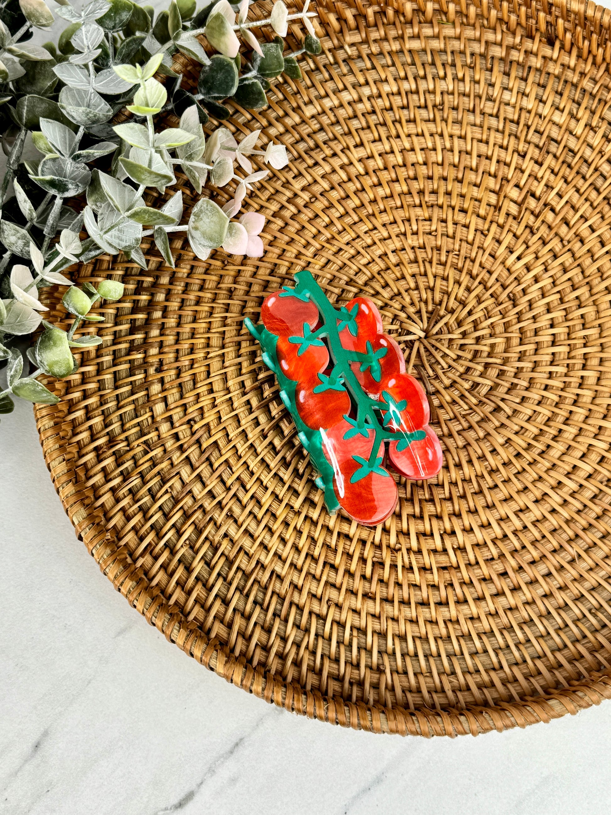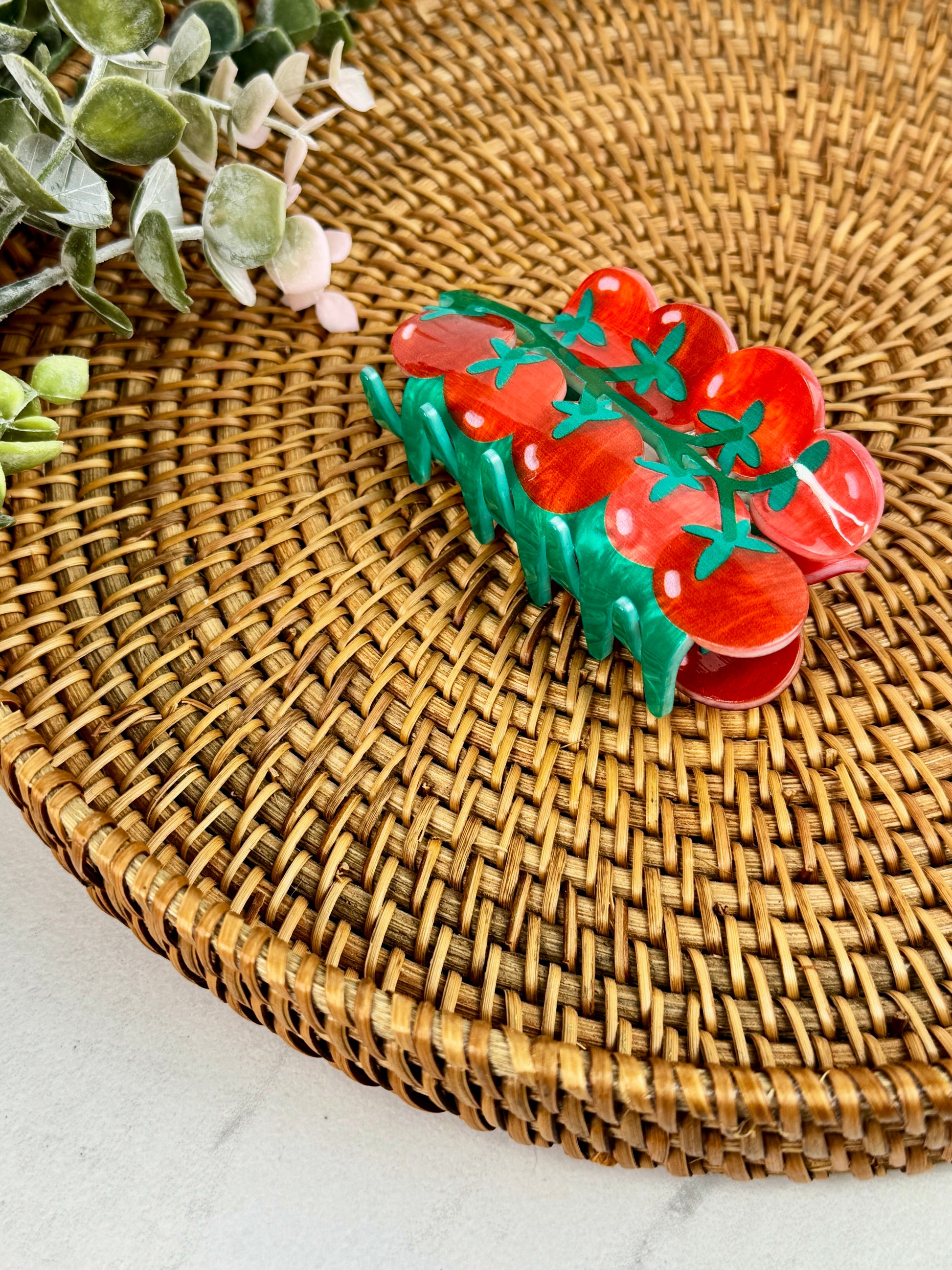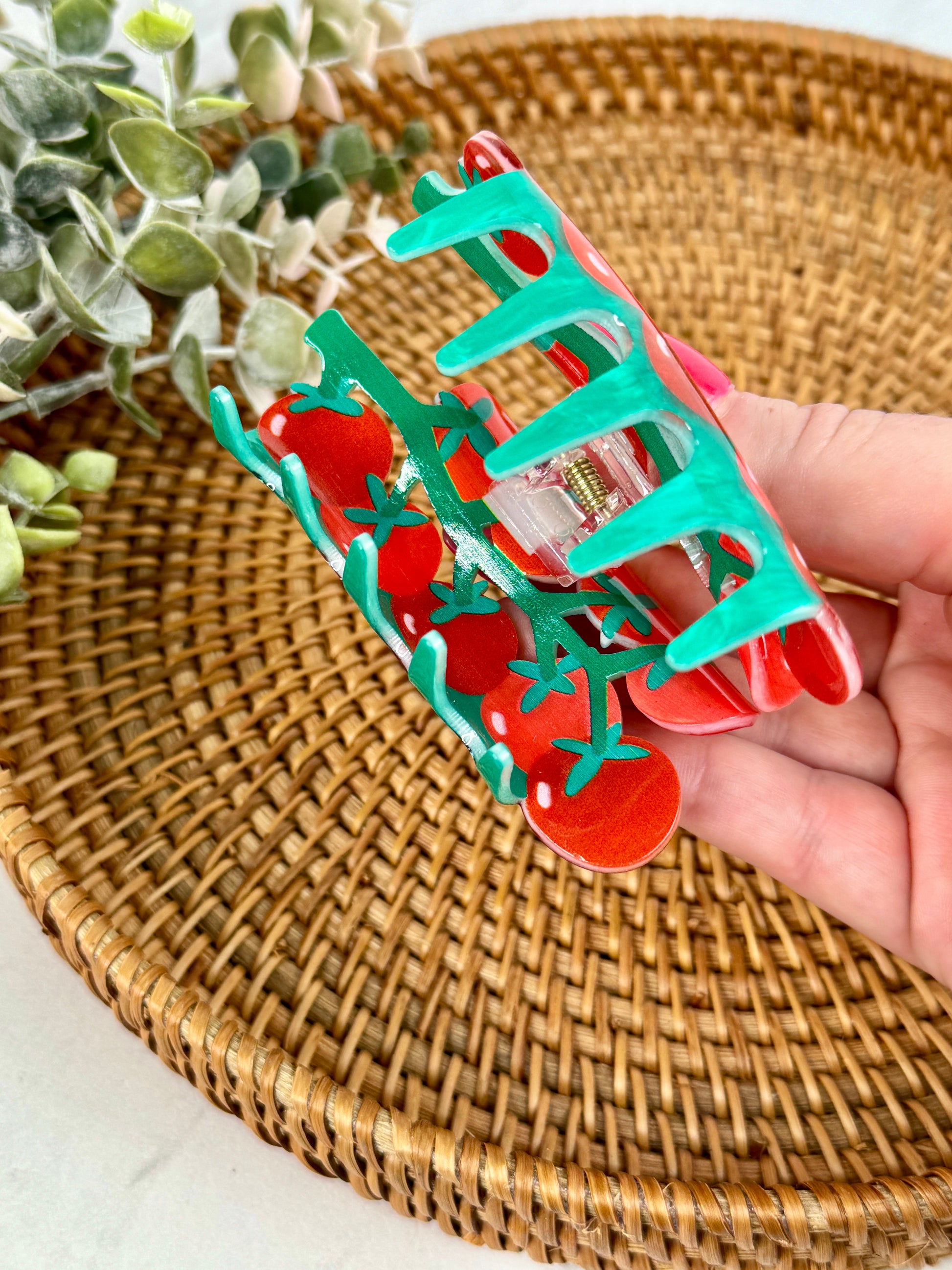 Fresh, fun, and totally unexpected — this claw brings main character energy to your hair game. Featuring juicy little tomato details in a bold, playful design, this clip is perfect for anyone who doesn’t take themselves too seriously. Whether you're headed to the farmer's market or just serving a look, this claw clip is ripe for the picking.