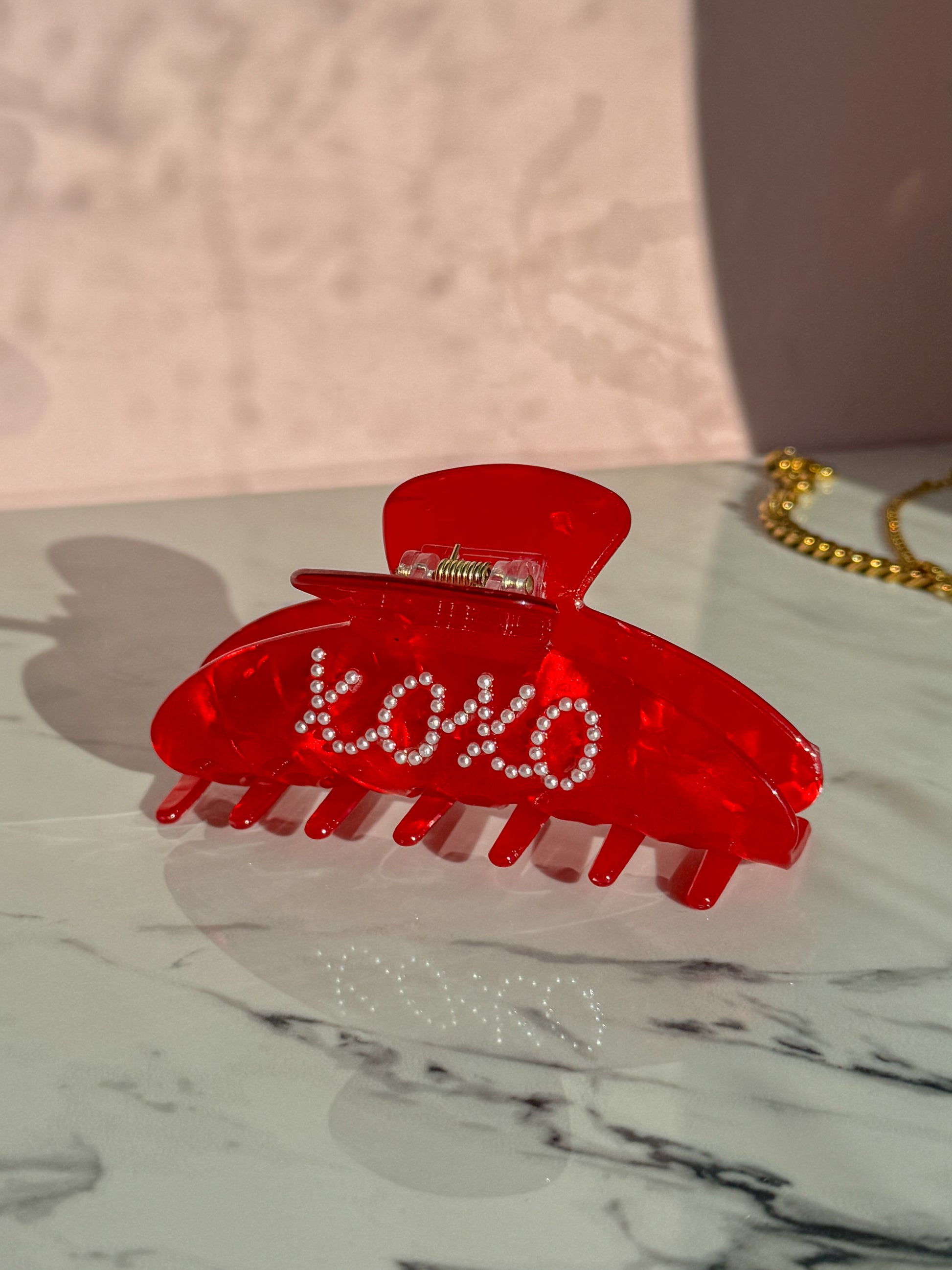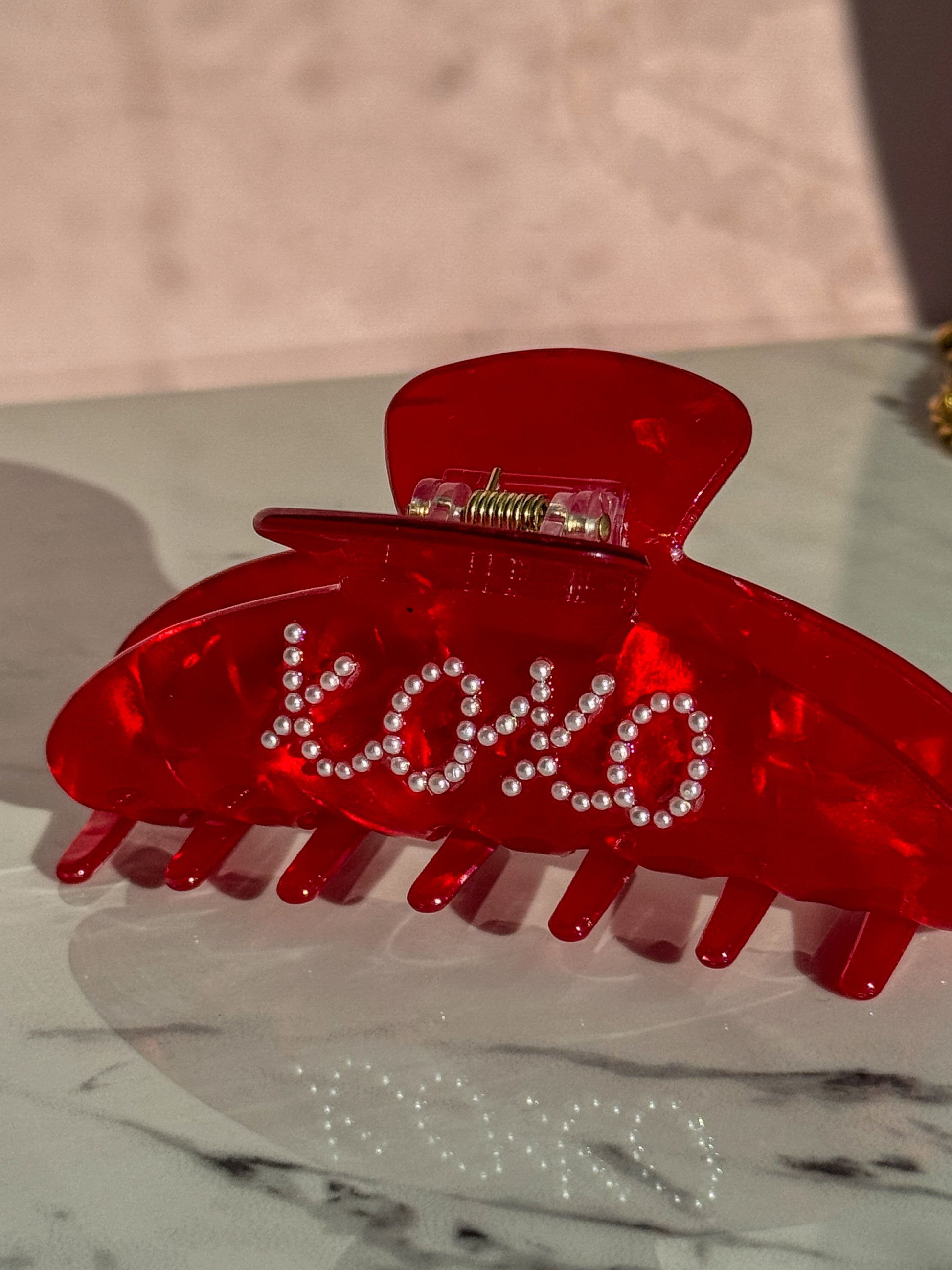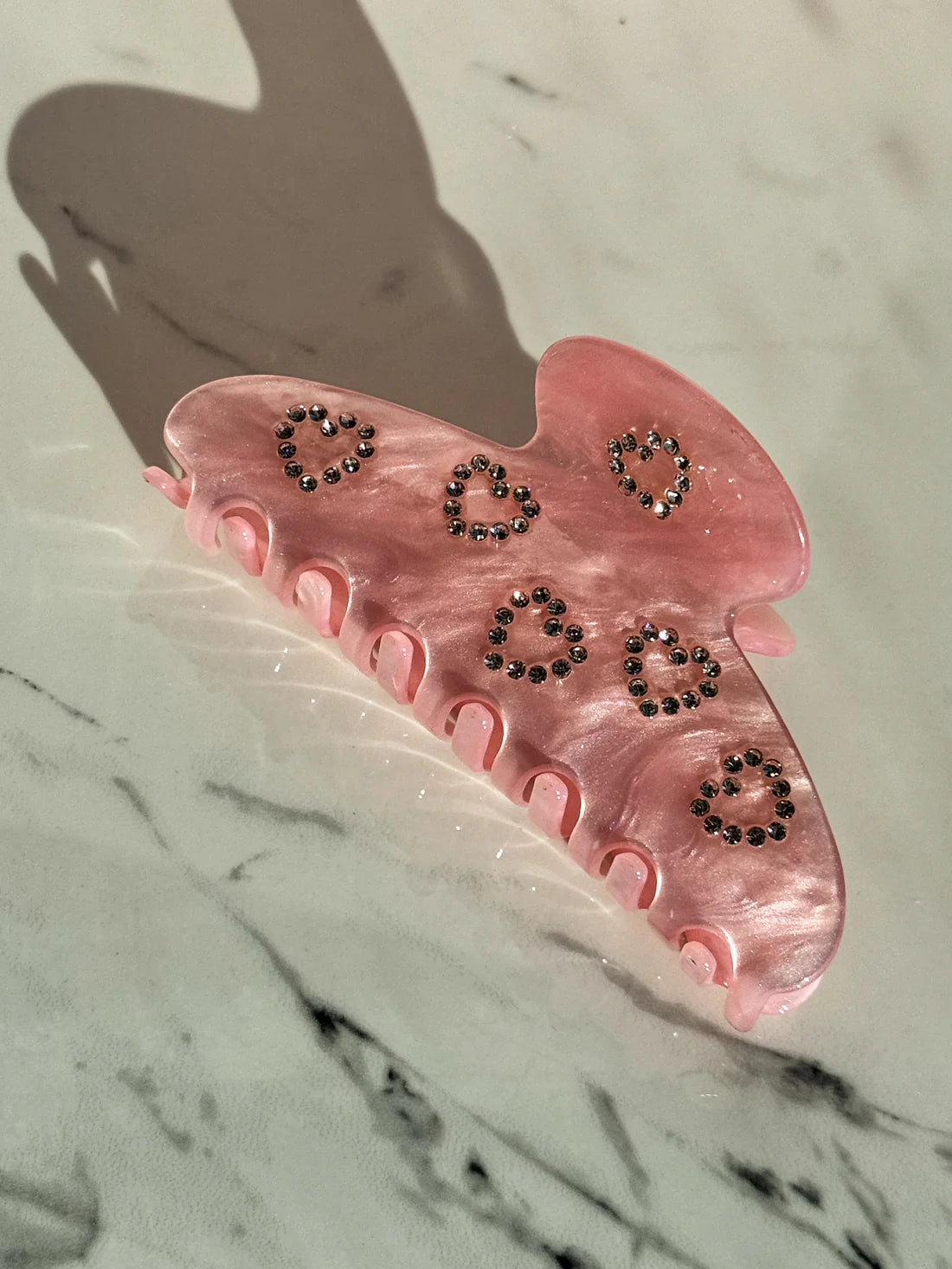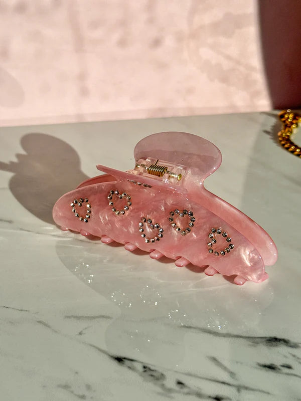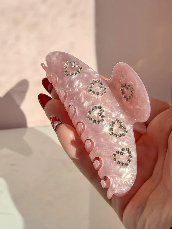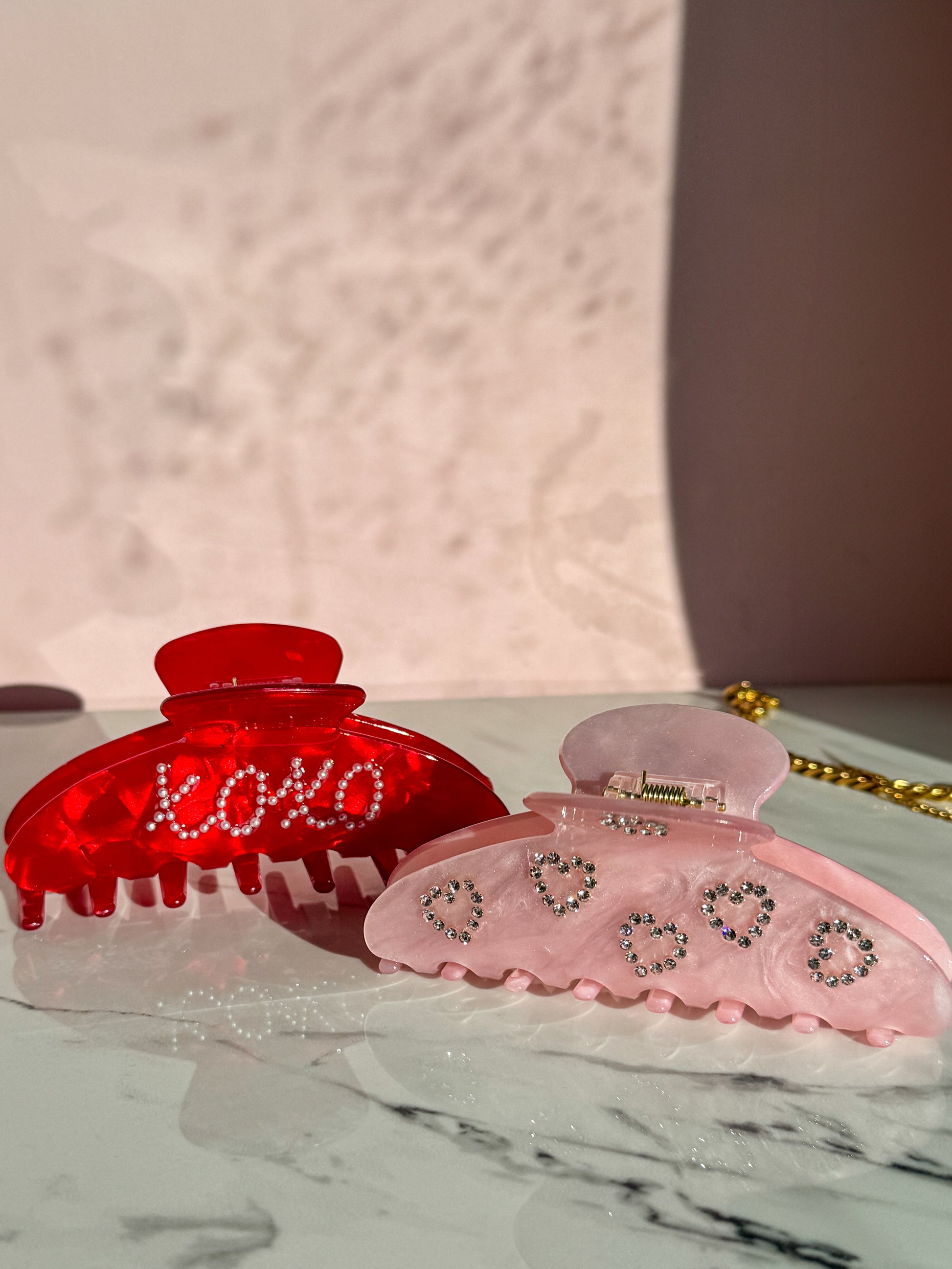 With its bold rhinestone details—either flirty “XOXO” or sparkling hearts—this limited-edition clip adds instant personality to any look while keeping your hair effortlessly in place.
